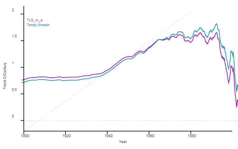 I say this because even the remaining urban stations undergo UHI affect, and anther .1 adjustment to the data set would make an almost perfect match to RSS.