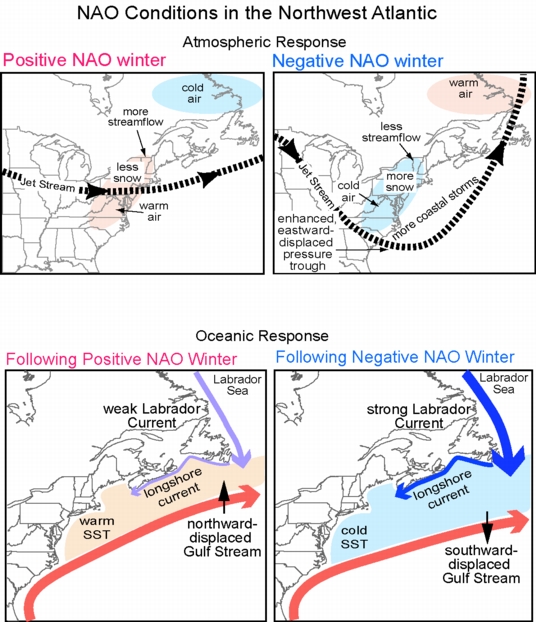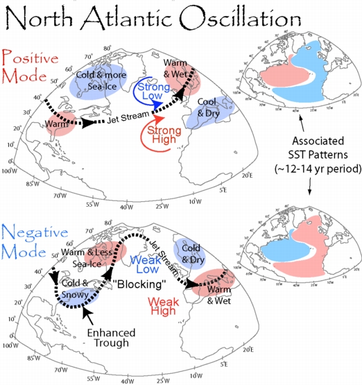 The AMO is an ongoing series of long-duration changes in the sea surface temperature of the North Atlantic Ocean, with cool and warm phases that may last for 20-40 years at a time and a difference of about 1°F between extremes. These changes are natural and have been occurring for at least the last 1,000 years.